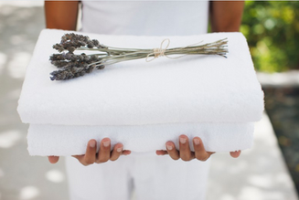 Ein Einzel-Set besteht aus je einem Bademantel, Saunatuch (groß), Handtuch (groß) sowie einem Paar Einweg-Badeslipper. Ein Doppelset enthält entsprechend die doppelte Anzahl.
